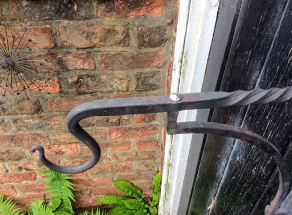 Hand forged and riveted hanging basket bracket. Available to order on request, price dependent on size & complexity of design